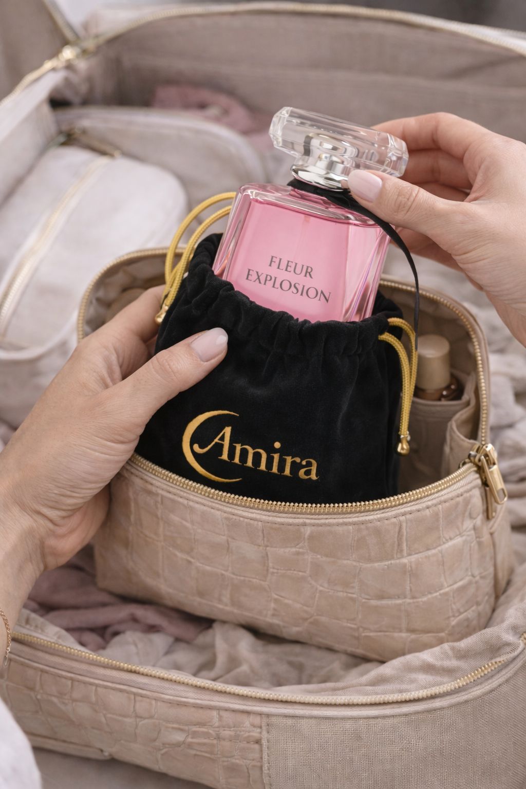 Świetnie sprawdzą się w podróży – chronią flakony i próbki przed zarysowaniami, a jednocześnie utrzymują porządek w kosmetyczce czy walizce. Dzięki eleganckiemu wyglądowi doskonale prezentują się także w domu – na półce, w szafie czy toaletce, dodając całości subtelnego, luksusowego charakteru.
